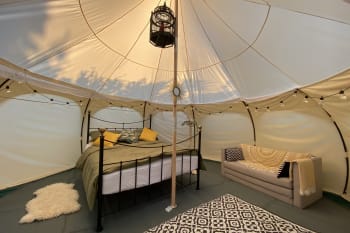 Perfect for romantic escapes & family adventures, 'Belle' our beautiful 5m Lotus Belle Tent, comes with her very own garden, and is located just 10 minutes walk from Lymington High Street!