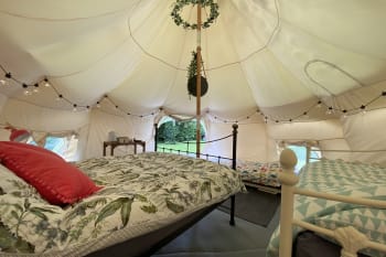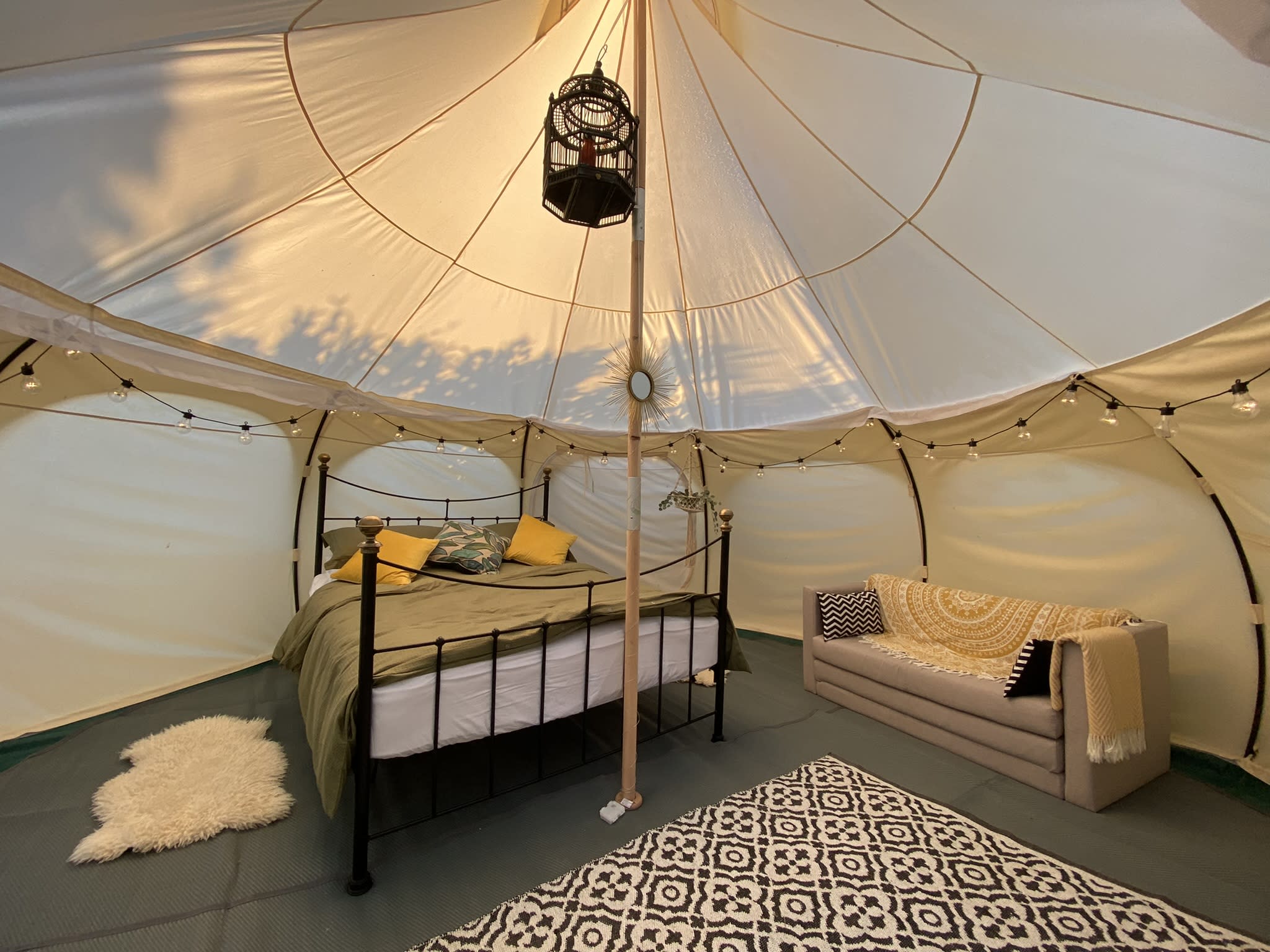 A beautifully designed yurt, cosy and clean. Both yurts are secluded and spacious. The outside kitchenette with fridge and basic utensils. A wholesome breakfast included. A shower room and toilet were clean and close to the yurts. Towels are provided. The hosts are very Friendly and welcoming. They went the extra mile to make us feel comfortable, were accommodating and cared that we enjoyed our visit.